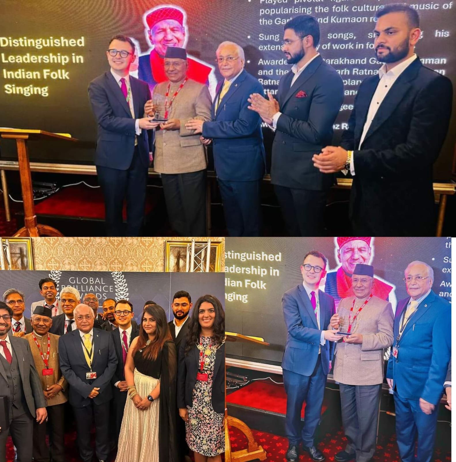 London के ऐतिहासिक House of Lords, British parliament में आयोजित Global Brilliance Award (GBA) में उत्तराखंड से लोकगायक गढ़रत्न नरेन्द्र सिंह नेगी को उनके 50 सालों में लोक गीत संगीत और संस्कृति को प्रोहत्साहन और योगदान के लिए Distinguished Leadership in Indian Folk Singing से पुरस्कृत किया गया।
