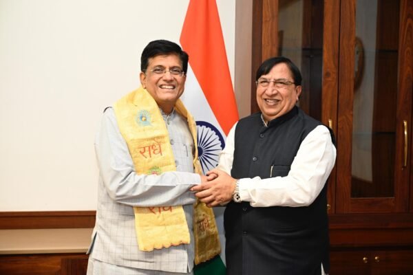 नई दिल्ली : राज्यसभा डॉ. नरेश बंसल ने केंद्रीय मंत्री षीयूष गोयल से भेंट कर नव दायित्व की बधाई व शुभकामनाए दी। भाजपा राष्ट्रीय सह-कोषाध्यक्ष व सासंद राज्य सभा डॉ. नरेश बंसल ने नई दिल्ली मे केन्द्रीय वाणिज्य एवं उद्योग मंत्री षीयूष गोयल से शिष्टाचार भेट की । डॉ. नरेश बंसल ने केंद्रीय मंत्री पीयूष गोयल जी से भेंट की व पटका उड़ाकर एवं पुष्प गुच्छ देकर नव दायित्व की हार्दिक बधाई और शुभकामनाए दी व विभिन्न समसामयिक विषयो पर सकारात्मक चर्चा की।