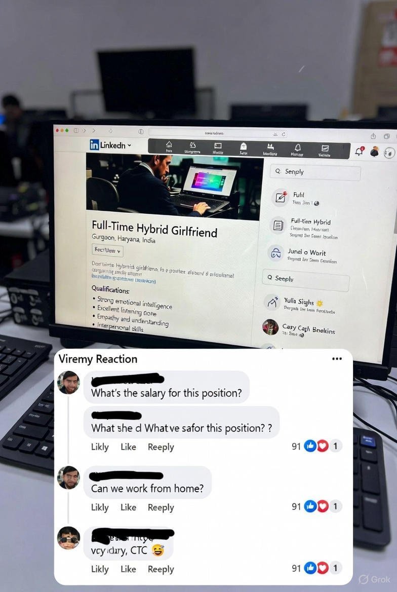 नई दिल्ली : सोशल मीडिया प्लेटफॉर्म लिंक्डइन, जो आमतौर पर प्रोफेशनल जॉब्स और नेटवर्किंग के लिए जाना जाता है, इस बार एक अनोखे ‘जॉब पोस्ट’ की वजह से सुर्खियों में है। गुरुग्राम में रहने वाले एक व्यक्ति दिनेश ने ‘फुल-टाइम हाइब्रिड गर्लफ्रेंड’ की वैकेंसी पोस्ट की है, जिसमें विस्तृत योग्यताएं बताई गई हैं। यह पोस्ट तेजी से वायरल हो रही है और यूजर्स मजाकिया अंदाज में ‘सैलरी पैकेज’ और ‘CTC’ के बारे में पूछ रहे हैं।