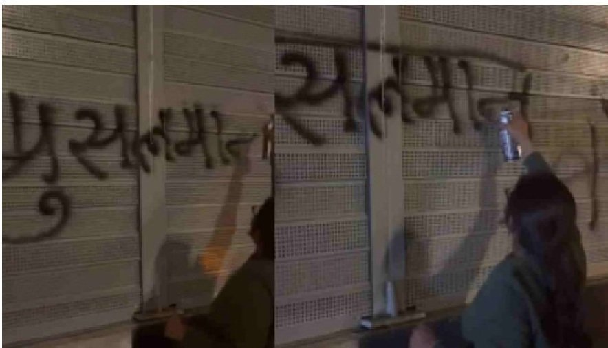 सहारनपुर/देहरादून : दिल्ली-देहरादून एक्सप्रेसवे के मोहंड क्षेत्र में एलिवेटेड रोड पर पेंट से लिखा गया आपत्तिजनक नारा “यह सड़क मुसलमानों के लिए नहीं है” सोशल मीडिया पर तेजी से वायरल हो रहा है। वीडियो में कुछ लोग (जिन्हें हिंदू रक्षा दल से जुड़े बताया जा रहा है) दीवार पर यह संदेश लिखते और जय श्री राम जैसे नारे लगाते नजर आ रहे हैं। इस घटना के बाद पुलिस ने मामला दर्ज कर जांच शुरू कर दी है।