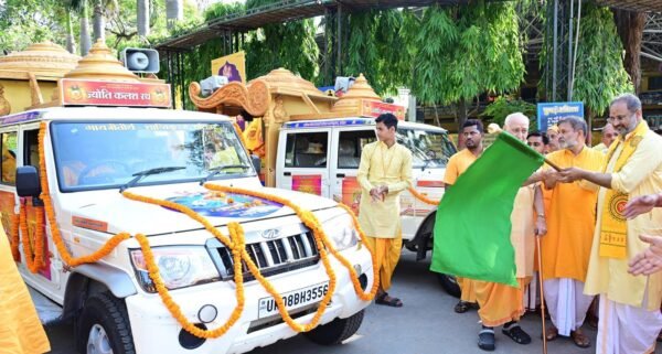 हरिद्वार (चंद्रप्रकाश बहुगुणा): परम वंदनीया माता भगवती देवी शर्मा की जन्मशताब्दी वर्ष 2026 के उपलक्ष्य में अखिल विश्व गायत्री परिवार द्वारा निकाली जा रही ज्योति कलश रथ यात्रा की श्रृंखला में आज शांतिकुंज से उत्तर प्रदेश के ३२ जनपदों हेतु दो रथों को रवाना किया गया। यह यात्रा देशभर में आध्यात्मिक चेतना, संस्कृति संवर्धन एवं युग निर्माण का संदेश लेकर घर-घर पहुँचेगी। इन रथों को देव संस्कृति विश्वविद्यालय के प्रतिकुलपति युवा आइकॉन डॉ. चिन्मय पण्ड्या जी तथा शांतिकुंज के व्यवस्थापक श्री योगेन्द्र गिरि जी ने हरी झंडी दिखाकर रवाना किया। कार्यक्रम का आयोजन श्रद्धेय डॉ. प्रणव पण्ड्या जी एवं श्रद्धेया शैलदीदी के मार्गदर्शन में सम्पन्न हुआ।