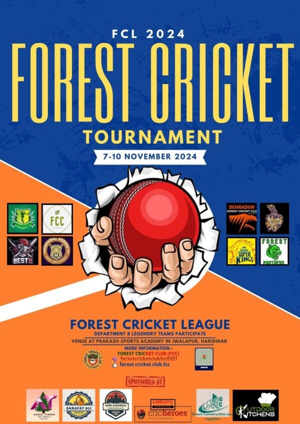 हरिद्वार : आगामी 7 नवंबर से प्रकाश स्पोर्ट्स एकेडमी, ज्वालापुर हरिद्वार में पहला फॉरेस्ट क्रिकेट लीग शुरू होने जा रहा है। जिसमें उत्तराखण्ड वन विभाग की कुमाऊँ व गढ़वाल मण्डल की 08 टीमों द्वारा प्रतिभाग किया जाएगा। जानकारी देते हुए आयोजनकर्ता शेखर जोशी ने कहा कि वन विभाग के कार्मिको द्वारा किए जाने वाला यह प्रथम वृहद् स्तर का आयोजन है,जिसका मुख्य उद्देश्य कार्मिक को अपने नियमित राजकीय दायित्वों के तनाव से मुक्ति तथा खेल के माध्यम से अपने राजकीय कार्यों में एकाग्रता व निपुणता लाने में सहायतीत होगा। अपने क्रिकेट कौशल में और अधिक सुधार लाने तथा आगामी अखिल भारतीय वन खेलकूद प्रतियोगिता जो कि उत्तराखण्ड में होनी है की तैयारी के रूप में भी होगा। साथ ही वनों का संरक्षण,वनों के प्रति स्थानीय ग्रामीणों को जागरूक करना,विभागीय कर्मचारियों को स्वास्थ्य के प्रति जागरूक करना है।