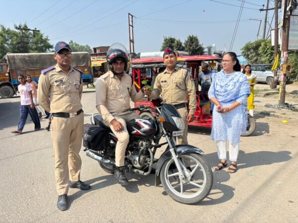 हरिद्वार : सहायक संभागीय परिवहन अधिकारी निखिल शर्मा ने अवगत कराया है कि परिवहन विभाग  द्वारा आज हेलमेट के प्रति सिडकुल क्षेत्र में प्रवर्तन/जागरूकता अभियान चलाया गया। उन्होंने अवगत कराया कि बिना हेलमेट के पाए गए 100  दुपहिया वाहनों का चालान किया गया तथा 15 से अधिक दुपहिया वाहन जिनके पास लाइंसेंस एवं हेलमेट नहीं थे उन वाहनों को सीज किया गया। उन्होंने यह भी अवगत कराया कि हेलमेट लगाने वाले लोगों को परिवहन टीम द्वारा फूल तथा चॉकलेट देकर प्रोत्साहित किया। इस अभियान में सहायक परिवहन अधिकारी नेहा झा, परिवहन कर अधिकारी अरुणा सैनी, सहायक परिवहन उप निरीक्षक अश्वनी कुमार, सहायक परिवहन निरीक्षक सुरवीर कण्डवाल शामिल रहे।