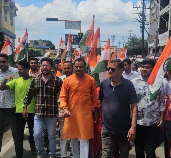 कोटद्वार। स्वतंत्रता दिवस के उपलक्ष्य में मंगलवार को कोटद्वार में एक भव्य तिरंगा यात्रा का आयोजन किया गया। इस आयोजन में शहर के सैकड़ों नागरिकों ने उत्साहपूर्वक भाग लिया, जिससे पूरा कोटद्वार देशभक्ति के रंग में रंगा नजर आया। इस तिरंगा यात्रा में भारतीय जनता पार्टी के कार्यकर्ता, समाजसेवी संगठनों और विभिन्न शैक्षणिक संस्थानों ने हिस्सा लिया। तिरंगा यात्रा की शुरुआत मालवीय उद्यान से हुई, यात्रा में हर उम्र के लोग शामिल थे, जिन्होंने हाथों में तिरंगा थामे शहर की सड़कों पर देशभक्ति के नारे लगाए।