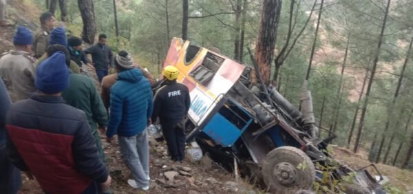 पौड़ी : दहलचोरी के पास एक बस अनियंत्रित होकर लगभग 100 मीटर खाई में दुर्घटनाग्रस्त हो गयी है। मिनी बस संख्या – UK12PB0177 जो कि पौड़ी बस अड्डे से केंद्रीय विद्यालय होते हुए श्रीनगर के लिए अपराह्न 03.00 बजे निकली थी। जो कि तहसील पौड़ी के कोठार बेंड के पास दुर्घटनाग्रस्त हो गयी है। आज 12 जनवरी 2025 को समय लगभग 16.00 बजे थाना पौड़ी पर सूचना प्राप्त हुई की सत्याखाल मार्ग में एक वाहन संख्या UK12PB-0177 (बस) दुर्घटनाग्रस्त होकर लगभग 80 मीटर खाई में गिर गयी है। इस सूचना पर तत्काल थाना पौड़ी से कोतवाली प्रभारी मय पुलिस टीम व एसडीआरएफ द्वारा मौके पर पहुंचकर रेस्क्यू प्रारम्भ किया गया। बस में कुल 22 लोग सवार थे जिनमें से अभी तक 05 व्यक्तियों की मृत्यु हो गई है। जिसमें अभी तक 17 लोग घायल बताए जा रहे हैं,जिन्हें उपचार हेतु अस्पताल पहुंचाया गया ,दुर्घटना के कारणों की जांच की जा रही है।पुलिस द्वारा आवश्यक वैधानिक कार्यवाही की जा रही है।