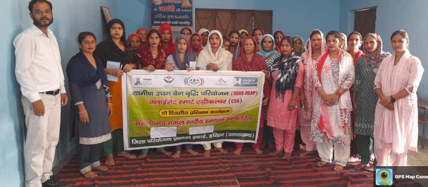 हरिद्वार : उत्तराखंड ग्राम्य विकास समिति के अंतर्गत संचालित ग्रामीण उद्यम वेग वृद्धि परियोजना / ग्रामोत्थान योजना के तहत मुख्य विकास अधिकारी हरिद्वार आकांक्षा कोण्डे के निर्देशन एवं जिला परियोजना प्रबंधक संजय सक्सेना (रीप / ग्रामोत्थान परियोजना) की देखरेख में भगवानपुर ब्लॉक के ग्राम सरठेढ़ी शाहजहांपुर स्थित मंगलमय सीएलएफ में दो दिवसीय क्लाइमेट स्मार्ट एग्रीकल्चर (सीएसए) प्रशिक्षण कार्यक्रम का सफल आयोजन किया गया। 25 से 26 सितम्बर 2025 तक आयोजित इस प्रशिक्षण में ब्लॉक भगवानपुर के सहायक प्रसार कृषि एवं पशुपालन के मास्टर ट्रेनर सौरभ गिरी द्वारा महिला किसानों को आधुनिक और जलवायु अनुकूल कृषि पद्धतियों के बारे में विस्तृत जानकारी प्रदान की गई। प्रशिक्षण में कुल 26 महिला किसानों ने सक्रिय रूप से भाग लिया।