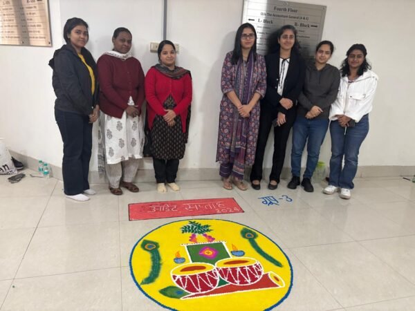 पूर्वाह्न में नेहा मित्तल, उप महालेखाकार एवं अंबिका रैना, सहायक महालेखाकार  के पर्यवेक्षण में रंगोली प्रतियोगिता  का आयोजन किया गया, जिसमे कुल 32 महिलाओं ने प्रतिभाग किया। रंगोली प्रतियोगिता का विषय “भारतीय संस्कृति के विभिन्न रंग” था।  रंगोली प्रतियोगिता में मुख्य रूप से ऑडिट दिवस और सीएजी, एकता में अनेकता, एवं भारतीय अध्यात्म का पुनर्जागरण आदि की झलकियाँ खूबसूरत रंगों से बिखेरी गयी। जिसका मुख्य उदेश्य  भारतीय संस्कृति के विविध आयामों को प्रदर्शित करना था। आयोजन को सुचारु रूप से संपादित कराने में मानसी जैन, पुष्पा तोमर  एवं शिखा खंडुरी  ने विशेष योगदान दिया।