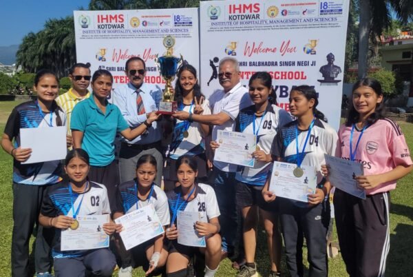 कोटद्वार। इंस्टिट्यूट ऑफ हॉस्पिटैलिटी मैनेजमेंट एंड साइंसेज की ओर से आयोजित चौथी इंटर स्कूल वालीबॉल प्रतियोगिता की बालक वर्ग में डेफोडिल स्कूल और बालिका वर्ग में नवयुग स्कूल चैंपियन रही। गुरुवार को बीईएल रोड बलभद्रपुर स्थित खेल मैदान में गढवाल राइफल्स के संस्थापक लॉट सुबेदार मेजर बलभद्र सिंह नेगी की स्मृति में आयोजित प्रतियोगिता के बालक और बालिका वर्ग के फाइनल मैच खेले गए। मैच का बतौर मुख्य अतिथि अंतरराष्ट्रीय फुटबॉल कोच सुनील रावत और कालेज के एमडी बीएस नेगी ने दीप प्रज्वलित और खिलाडि़यों का परिचय प्राप्त कर शुभारंभ किया । बालिका वर्ग का पहला फाइनल मैच डीएवी पब्लिक स्कूल और नवयुग स्कूल के बीच खेला गया। दोनों टीम के खिलाड़ी अंक के लिए जूझते रहे। लेकिन, नवयुग की टीम ने बेहतर रणनीति के साथ अपने खेल का प्रदर्शन करते हुए डीएवी को दोनों सेट में 21-19 और 21-12 के अंतर से हराकर प्रतियोगिता अपने नाम की । बालक वर्ग का फाइनल मैच डेफोडिल स्कूल और नवयुग स्कूल के बीच खेला गया।