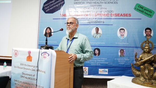 देहरादून । श्री महंत इन्दिरेश अस्पताल व श्री गुरु राम राय इंस्टीट्यूट ऑफ मेडिकल एण्ड हैल्थ सांइसेज के नेत्र रोग विभाग के द्वारा आज उत्तराखण्ड स्टेट ऑपथैलमोलॉजिकल सोसाइटी के तत्वाधान में ’दी रेटिना इन सस्टैमिक डीजीज’ पर एक दिवसीय निरंतर चिकित्सा शिक्षा (कन्टिन्यूइंग मेडिकल एजुकेशन) कार्यक्रम का आयोजन किया गया।
