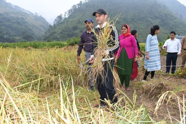 बागेश्वर : जिलाधिकारी आशीष भटगांई ने मंगलवार सुबह बिलौना सेरा में पहुंचकर धान की फसल पर किए जा रहे क्रॉप कटिंग प्रयोग का स्थलीय निरीक्षण कर जायजा लिया। जिलाधिकारी ने स्वंय भी परम्परागत फसल धान की क्रॉप कटिंग की। इस दौरान काश्तकार उत्तम सिंह टाकुली के खेत में 6×5 वर्ग मीटर के हिस्से में क्रॉप कटिंग की गई। जिसमें 6 किलो 650 ग्राम धान की उपज प्राप्त हुई।