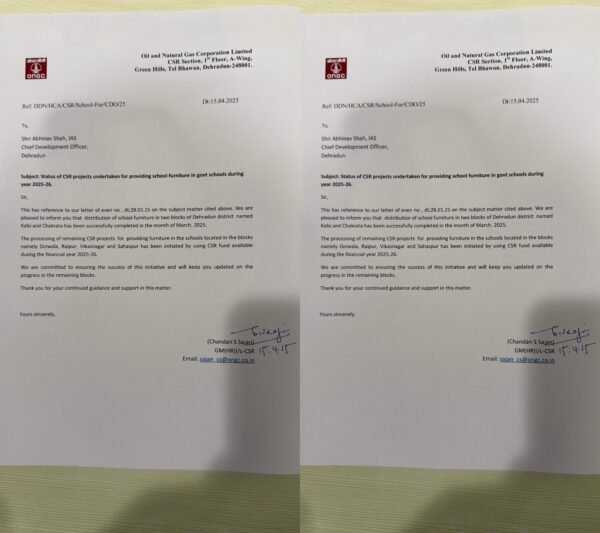 - ब्लॉक कालसी व चकराता के स्कूल हुए सीएसआर फर्नीचरयुक्त; अब डोईवाला, रायपुर, विकासनगर व सहसपुर के स्कूलों की है बारी