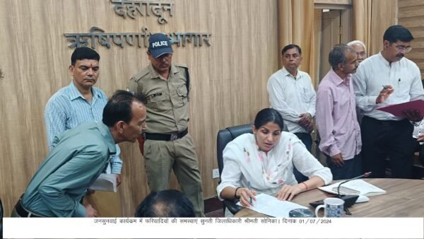 देहरादून : जिलाधिकारी सोनिका की अध्यक्षता में ऋषिपर्णा सभागार में जनसुनवाई का आयोजन किया गया। जनसुनवाई में 94 शिकायत प्राप्त हुई।जनसुनवाई में अधिकतर शिकायत भूमि विवाद, अतिक्रमण, नाली सफाई, आपसी विवाद, मारने की धमकी, रास्ता बंद करने, नहर खुलवाने, अवैध डेयरी संचालन बंद करने आदि शिकायत प्राप्त हुई। जिलाधिकारी ने सम्बन्धित अधिकारियों को निर्देशित किया कि शिकायती पत्रों को मार्क करने की प्रवृत्ति के बजाय स्वयं सज्ञान लेकर कार्यवाही करें सम्बन्धित अधिकारी। अधीनस्थ स्तर से प्राप्त आख्या की वस्तुतिस्थिति की स्वयं जांच कर कार्यवाही करें। जिलाधिकारी ने समस्त विभागों के अधिकारियों को निर्देशित किया कि जनसुनवाई में प्राप्त शिकायतों को गंभीरता से लेते हुए, समयबद्ध निस्तारण करने के निर्देश दिए।