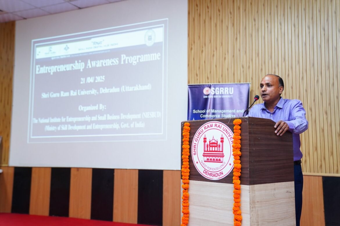 देहरादून। स्कूल ऑफ मैनेजमेंट एंड कॉमर्स स्टडीज़ ने राष्ट्रीय लघु उद्योग और उद्यमिता विकास संस्थान के सहयोग से उद्यमिता जागरूकता कार्यक्रम का सोमवार को सफलतापूर्वक आयोजन किया। इस कार्यक्रम का उद्देश्य छात्रों को उद्यमिता पारिस्थितिकी तंत्र और भारत में उभरते उद्यमियों के लिए उपलब्ध अवसरों के बारे में प्रेरित करना और शिक्षित करना था।