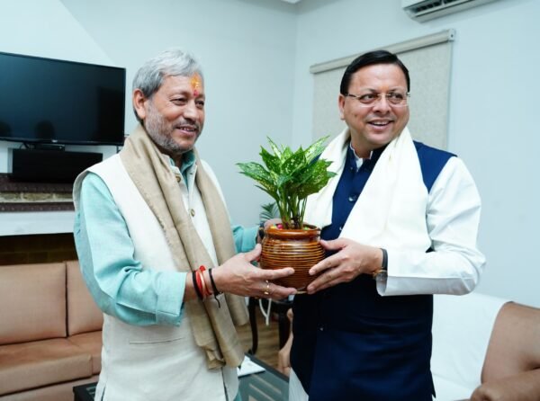 सीएम पुष्कर सिंह धामी से पूर्व मुख्यमंत्री तीरथ सिंह रावत ने की शिष्टाचार भेंट by khabarchaumasa October 15, 2024 October 15, 2024 133 देहरादून : मुख्यमंत्री पुष्कर सिंह धामी से सोमवार को मुख्यमंत्री आवास में पूर्व मुख्यमंत्री तीरथ सिंह रावत ने शिष्टाचार भेंट की। इस दौरान उन्होंने राज्य के विकास से संबंधित विभिन्न विषयों पर विस्तार से चर्चा की। khabarchaumasa previous post एक्सप्रेस ट्रेन को बेपटरी करने की साजिश, ऐसे टला बड़ा हादसा next post उत्तराखंड: केदारघाटी में सुरक्षा और पुनर्स्थापना कार्यों के लिए 4836.63 लाख के कार्य स्वीकृत Related Posts चारधाम यात्रा की गरिमा से खिलवाड़ करने वालों... April 24, 2026 बदरीनाथ धाम में फिर लौटी ठंड, बारिश और... April 24, 2026 डॉ. शिवानंद नौटियाल राजकीय स्नातकोत्तर महाविद्यालय में वार्षिकोत्सव... April 24, 2026 वैदिक मंत्रोच्चार के बीच खुले बदरीनाथ धाम के... April 24, 2026 हजारों श्रद्धालुओं की मौजूदगी में खुले भू-बैकुंठ बदरीनाथ... April 24, 2026 बदरीनाथ मंदिर प्रभारी बने गिरीश चौहान April 23, 2026