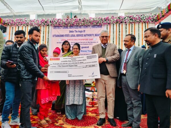 सुल्तानपुर/हरिद्वार : राज्य विधिक सेवा प्राधिकरण के तत्वाधान में जिला विधिक सेवा प्राधिकरण द्वारा जनता इंटर कॉलेज में बहुद्देशीय विधिक सेवा एवं जागरूकता शिविर का आयोजन किया गया। शिविर का उद्घाटन, कार्यवाहक मुख्य न्याय मूर्ती उत्तराखंड हाईकोर्ट एवं कार्यपालक अध्यक्ष राज्य विधिक सेवा प्राधिकरण मनोज कुमार तिवारी द्वारा दीप जलाकर किया गया।