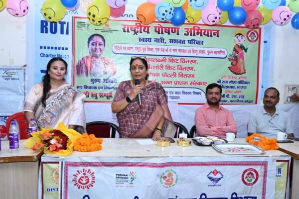 कार्यक्रम को संबोधित करते हुए विधानसभा अध्यक्ष ने कहा कि – “वर्ष 2018 में हमारे देश के यशस्वी प्रधानमंत्री नरेंद्र मोदी द्वारा महिलाओं और बच्चों के पोषण एवं स्वास्थ्य की दिशा में राष्ट्रीय पोषण अभियान जैसी महत्वपूर्ण पहल की गई थी। यह अभियान न केवल पोषण सुरक्षा सुनिश्चित करता है, बल्कि मातृ एवं शिशु स्वास्थ्य को सुदृढ़ बनाकर परिवार और समाज दोनों को सशक्त करता है। महिला समाज की निर्माता है – वह केवल एक बच्चे को जन्म नहीं देती, बल्कि एक सशक्त समाज का निर्माण करती है।”
