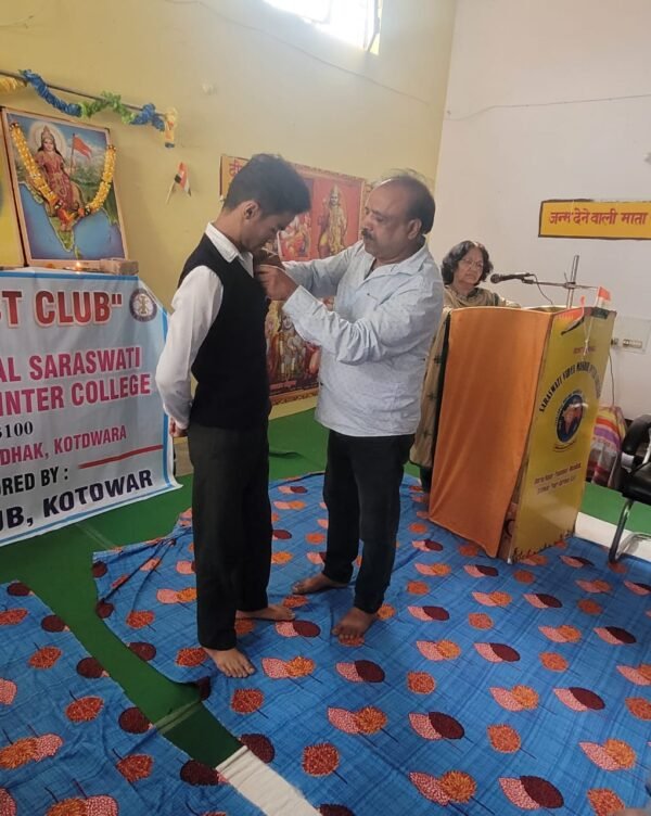 कोटद्वार । रोटरी क्लब कोटद्वार की युवा सेवा योजना के अंतर्गत रोहित अग्रवाल सरस्वती विद्या मन्दिर इण्टर कांलेज उमरावनगर मे इन्ट्रेक्ट क्लब का गठन किया गया । जिसमें अध्यक्ष हिमानी व सचिव राधिका को बनाया गया। इसके समस्त पदाधिकारी व सदस्यो को शपथ ग्रहण कराई गई ।