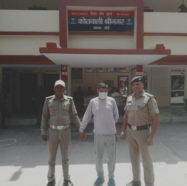 श्रीनगर : वरिष्ठ पुलिस अधीक्षक पौड़ी गढ़वाल के निर्देशन में जनपद पौड़ी गढ़वाल में वांछित अभियुक्त/ गैर जमानती वारंट की गिरफ्तारी हेतु अभियान गतिमान है। जिनके द्वारा समस्त थाना प्रभारियों को अपने-अपने क्षेत्र में फरार अपराधियों, गैर जमानती वारंटियो व वाछित अपराधियों की गिरफ्तारी हेतु निर्देशित किया गया है। उक्त आदेश के अनुपालन में गठित पुलिस टीम द्वारा 2023 से फरार चल रहे वारंटी विपिन बल्लभ बहुगुणा पुत्र बुद्धि बल्लभ बहुगुणा (उम्र-46 वर्ष), निवासी- डूंगरियो, मोहल्ला बेस अस्पताल श्रीकोट के पीछे, श्रीकोट गंगानाली, श्रीनगर, जनपद पौड़ी गढ़वाल फौ. वाद संख्या 439/2023, धारा-138 एनआई एक्ट में अभियुक्त को श्रीकोट श्रीनगर क्षेत्र से 23 मई 2025 को समय 08.45 बजे गिरफ्तार किया गया है। गिरफ्तार वारंटी अभियुक्त को न्यायालय में पेश कऱ आवश्यक कार्यवाही की जा रही है। अभियुक्त बार बार गिरफ़्तारी से बचने के लिए बार-बार घर से भागकर छिपने का प्रयास कर रहा था।