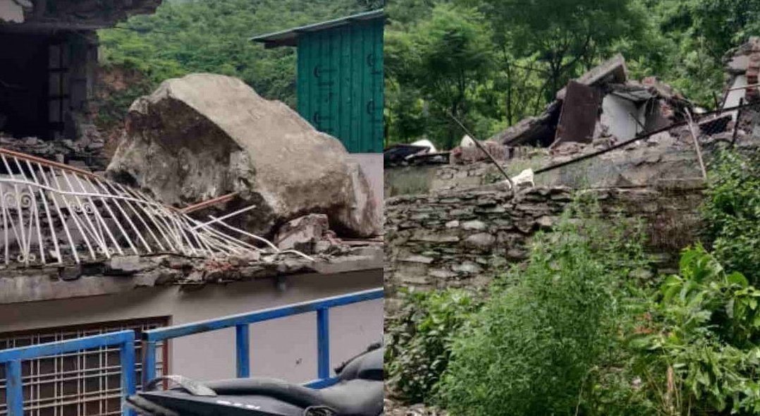 देवप्रयाग में नृसिंहगाचल पर्वत से भूस्खलन, मकान क्षतिग्रस्त, वाहन दबे, एक घायल