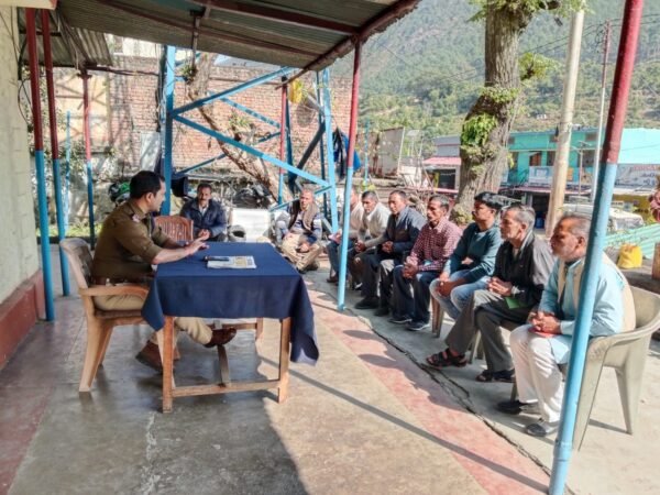उत्तरकाशी (कीर्तिनिधि सजवाण) : डुंडा के नवनियुक्त प्रभारी उपनिरीक्षक प्रकाश राणा ग्राम चौकीदारों के साथ गोष्ठी का आयोजन किया गया। सभी से ग्रामों की कुशलक्षेम ली गयी, उनके द्वारा गोष्टी में सभी को साइबर अपराध, महिला अपराध,नशे के दुष्प्रभाव  जानकारी देते हुये क्षेत्र में मादक पदार्थों की तस्करी की रोकथाम, बाहरी व्यक्तियों की जानकारी तथा पुलिस सत्यापन के सम्बन्ध में जरुरी निर्देश दिने के साथ प्रभावी समन्वय एवं सूचनाओं के आदान-प्रदान करने संबंधी महत्वपूर्ण दिशा निर्देश दिए गए ।