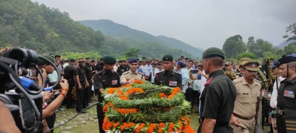 कोटद्वार । देश की रक्षा के लिए जम्मू कश्मीर के कठुआ में आतंकी हमले में जनपद पौड़ी गढ़वाल के ग्राम कर्तिया, नोदानु, तहसील रिखणीखाल निवासी कमल सिंह एवं ग्राम -डोबरिया, तहसील रिखणीखाल निवासी अनुज नेगी 8 जुलाई की रात्रि आतंकी हमले में देश के लिए शहीद हो गये थे। 9 जुलाई को शहीद कमल सिंह एवं अनुज नेगी के पार्थिव शरीर को भारतीय सेना के हेलीकॉप्टर से कोटद्वार लाया गया। जहां से उनके पार्थिव शरीरों को बुधवार को उनके पैतृक निवास स्थानों ले जाया गया।