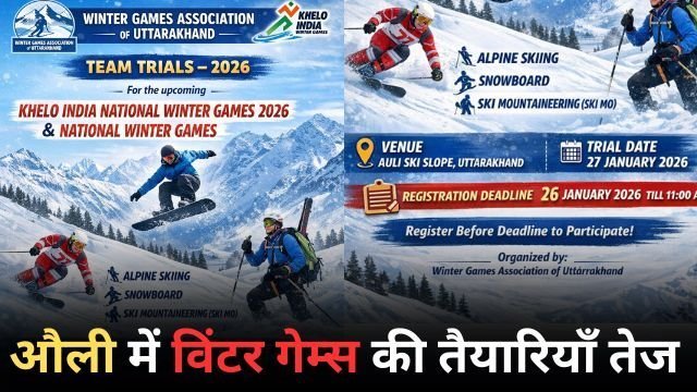 यह ट्रायल 27 जनवरी 2026 को औली स्की स्लोप पर होगा, जिसमें अल्पाइन, स्नोबोर्ड और स्की माउंटेनियरिंग (Ski Mo) स्पर्धाओं के खिलाड़ी शामिल होंगे। प्रतियोगिता में भाग लेने के इच्छुक खिलाड़ियों को 26 जनवरी 2026 की सुबह 11:00 बजे तक अपना नामांकन अनिवार्य रूप से कराना होगा।