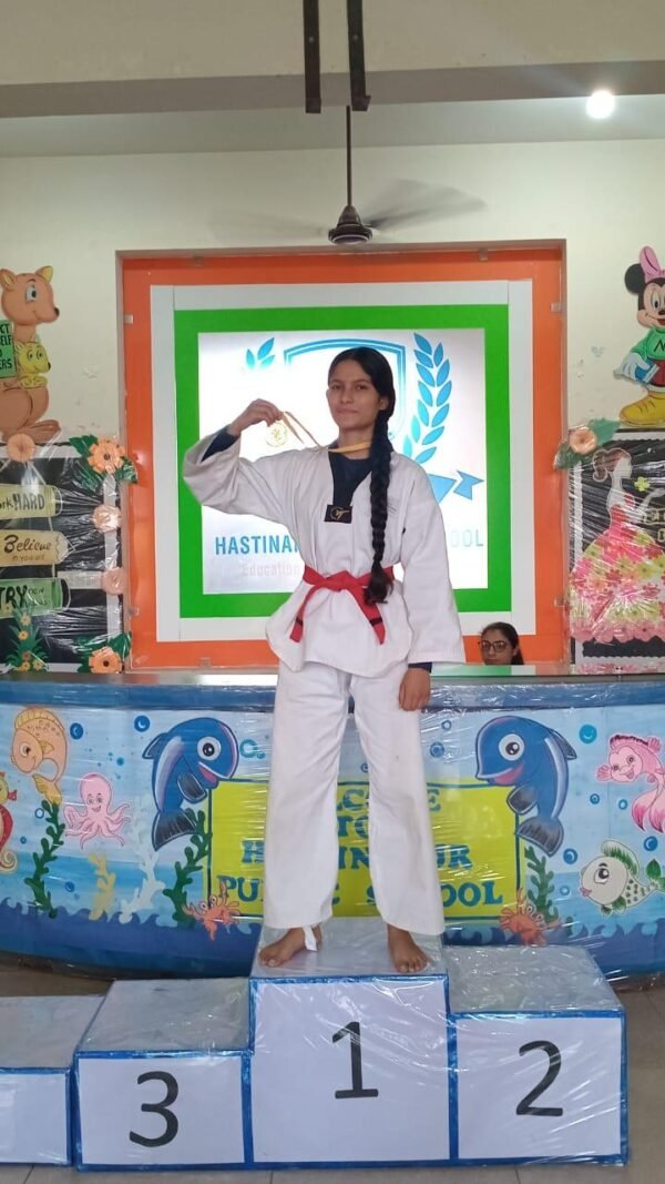 कोटद्वार। सीबीएसई नोर्थ जोन – 1 ताईनक्वाडीं गर्ल्स चैम्पियनशिप सितम्बर 2024 हस्तिनापुर पब्लिक स्कूल, हस्तिनापुर, मेरठ में आयोजित हुई जिसमें पदमपुर मोटाढांक स्थित नवयुग पब्लिक स्कूल से बालिका वर्ग में अण्डर 14, 29 किग्रा भारवर्ग में कनिका नेगी ने कास्य पदक और सीनियर 19, 46 किग्रा भारवर्ग में साक्षी ने स्वर्ण पदक जीतकर नैशनल ताईक्वांडो प्रतियोगिता के लिए क्वालीफाई किया । साक्षी का नेशनल ताईक्वांडो प्रतियोगिता में चयन होने पर समस्त विद्यालय ने खुशी व्यक्त की तथा विद्यालय की प्रधानाचार्या नीलम नेगी ने बालिका को शुभकामनाएं प्रेषित की। साथ ही उन्होनें ताईक्वांडो कोच चारू संगम को भी शुभकामनाएं दी तथा बताया कि दोनों की मेहनत, लगन एवं कठिन परिश्रम के द्वारा ही साक्षी को सफलता प्राप्त हुई है।