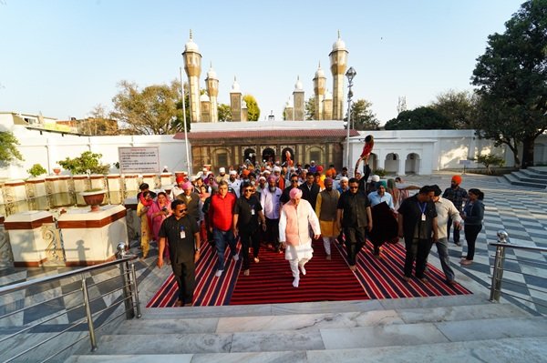 देहरादून। पंजाब के विभिन्न हिस्सों से 150 सदस्यीय पैदल संगत का जत्था बुधवार शाम को श्री दरबार साहिब पहुंचा। शाम 5ः30 बजे श्री दरबार साहिब देहरादून के दर्शनी गेट पहुंचते ही पैदल संगत का पुष्प वर्षा व ढोल नगाड़ों की थाप के साथ दूनवासियों व दरबार श्री गुरु राम राय जी महाराज, प्रबन्ध समिति एवं श्री झंडा जी मेला आयोजन समिति ने जोरदार स्वागत किया। दर्शनी गेट व श्री दरबार साहिब परिसर में श्री दरबार साहिब के सज्जादानशीन श्रीमहंत देवेन्द्र दास जी महाराज की अगुवाई में पुष्प वर्षा के बीच संगत का जोरदार स्वागत हुआ। श्री महाराज जी ने संगत को दर्शन दिए व आशीर्वाद दिया। श्री दरबार साहिब परिसर व निकटवर्ती समूचा क्षेत्र श्री गुरु राम राय जी महाराज के गगनभेदी जयकारों से गूंज उठा।