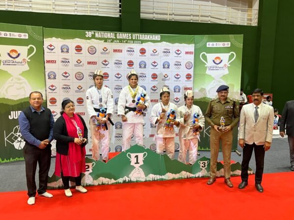 देहरादून : वर्तमान में उत्तराखण्ड राज्य में चल रहे 38 वे राष्ट्रीय खेलो में विभिन्न राज्यों से आये खिलाडियो द्वारा विभिन्न प्रतियोगिताओ में प्रतिभाग किया जा रहा है। राष्ट्रीय खेलो के दौरान आयोजित की जा रही जूडो प्रतियोगिता में महिला वर्ग (63 किग्रा) का फाइनल मुकाबला आज उत्तराखण्ड तथा मध्यप्रदेश के खिलाडियों के मध्य खेला गया, जिसमें उत्तराखण्ड राज्य की महिला जूडो खिलाडी उन्नति शर्मा द्वारा उत्कृष्ट प्रदर्शन करते हुए 63 किग्रा महिला वर्ग में स्वर्ण पदक हासिल किया गया, उन्नति शर्मा वन विभाग में उप निरीक्षक के पद पर नियुक्त है ,उक्त वर्ग में मध्यप्रदेश की हिमांशी टोकस को रजत पदक तथा मणीपुर की ईरेंगबम कल्पना देवी तथा जम्मू कश्मीर की तलहा फययाज को कांस्य पदक प्राप्त हुआ।