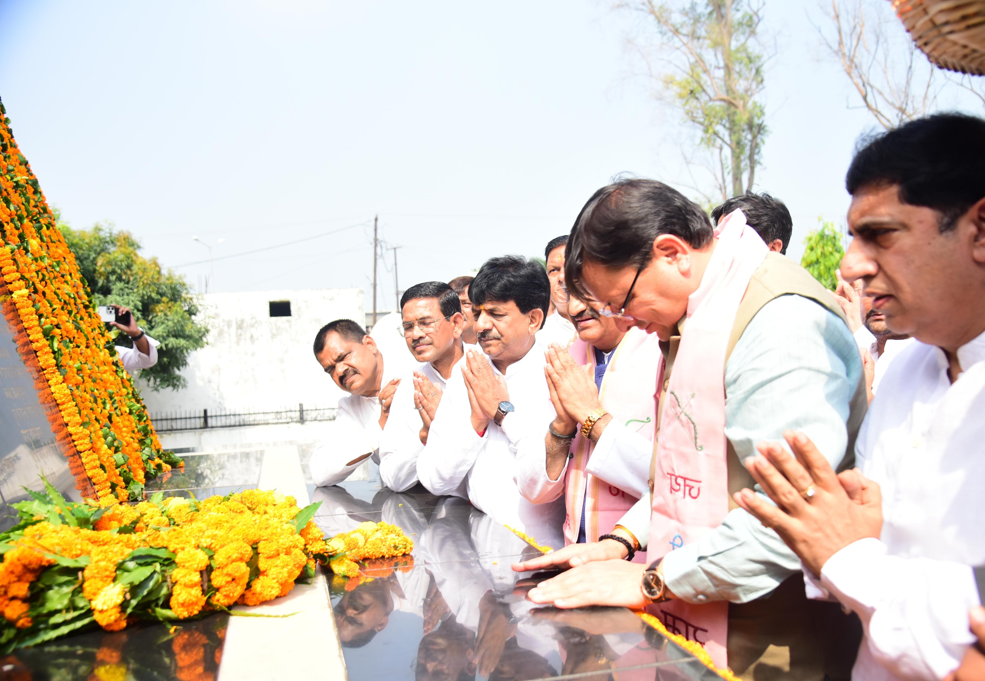 देहरादून : मुख्यमंत्री पुष्कर सिंह धामी ने बुधवार को शहीद स्थल रामपुर तिराहा, मुजफ्फरनगर, (उ.प्र.) में उत्तराखण्ड राज्य आन्दोलनकारी शहीदों की पुण्य स्मृति में आयोजित कार्यक्रम में प्रतिभाग करते हुए शहीद स्मारक में पुष्पांजलि अर्पित कर शहीदों को श्रद्धांजलि दी। इस अवसर पर मुख्यमंत्री ने रामपुर तिराहा गोलीकांड में शहीद हुए प्रत्येक राज्य आंदोलनकारी की याद में शहीद स्थल रामपुर में उनकी प्रतिमा लगाए जाने की घोषणा की। मुख्यमंत्री ने शहीद स्थल के लिये भूमि दान करने वाले दिवंगत महावीर शर्मा की प्रतिमा का भी शिलान्यास किया।