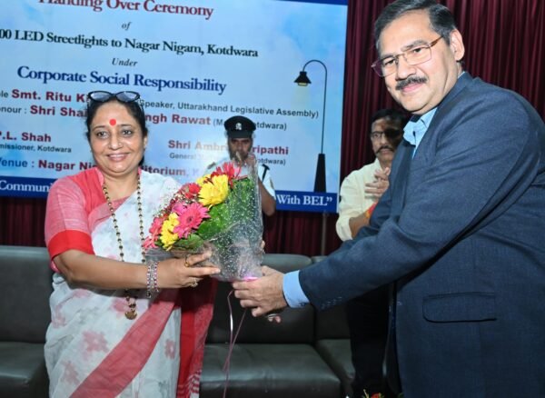 कोटद्वार : नगर निगम क्षेत्र में स्ट्रीट लाइट्स लगाने की दिशा में आज एक महत्वपूर्ण पहल की गई। विधानसभा अध्यक्ष ऋतु खण्डूडी भूषण भारत इलेक्ट्रॉनिक्स लिमिटेड (BEL) की CSR (कॉर्पोरेट सोशल रिस्पोंसिबिलिटी) योजना के तहत आयोजित स्ट्रीट लाइट वितरण कार्यक्रम में मुख्य अतिथि के रूप में शामिल हुईं। इस अवसर पर, BEL द्वारा कोटद्वार को 1500 स्ट्रीट लाइट्स उपलब्ध कराई गईं, जिससे शहर की सड़कों को रोशन करने में मदद मिलेगी।