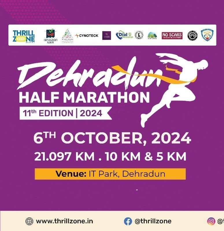 थ्रिल ज़ोन का देहरादून हाफ मैराथन-2024 का आयोजन 6 अक्टूबर को, इस बार हाफ मैराथन की थीम है “रन फॉर साइबर सिक्योरिटी”