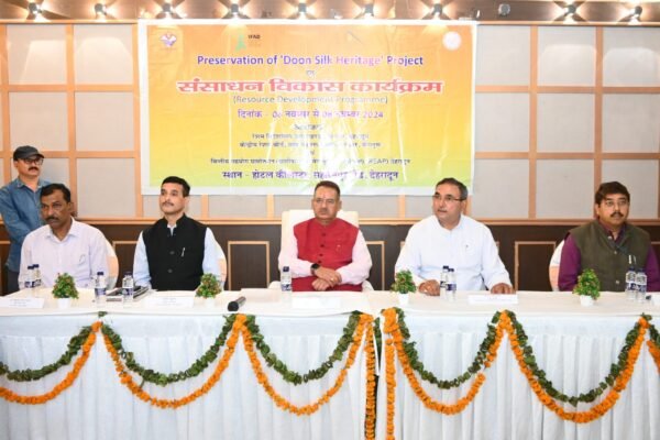 देहरादून : ग्राम्य विकास मंत्री गणेश जोशी ने शुक्रवार को देहरादून के एक निजी होटल में केन्द्रीय रेशम बोर्ड एवं रेशम निदेशालय तथा ग्रामीण उद्यम वेग वृद्धि परियोजना (REAP) के संयुक्त तत्वाधान में आयोजित प्रिजर्वेशन ऑफ दून सिल्क हेरिटेज प्रोजेक्ट हेतु संसाधन विकास कार्यक्रम में प्रतिभाग किया।